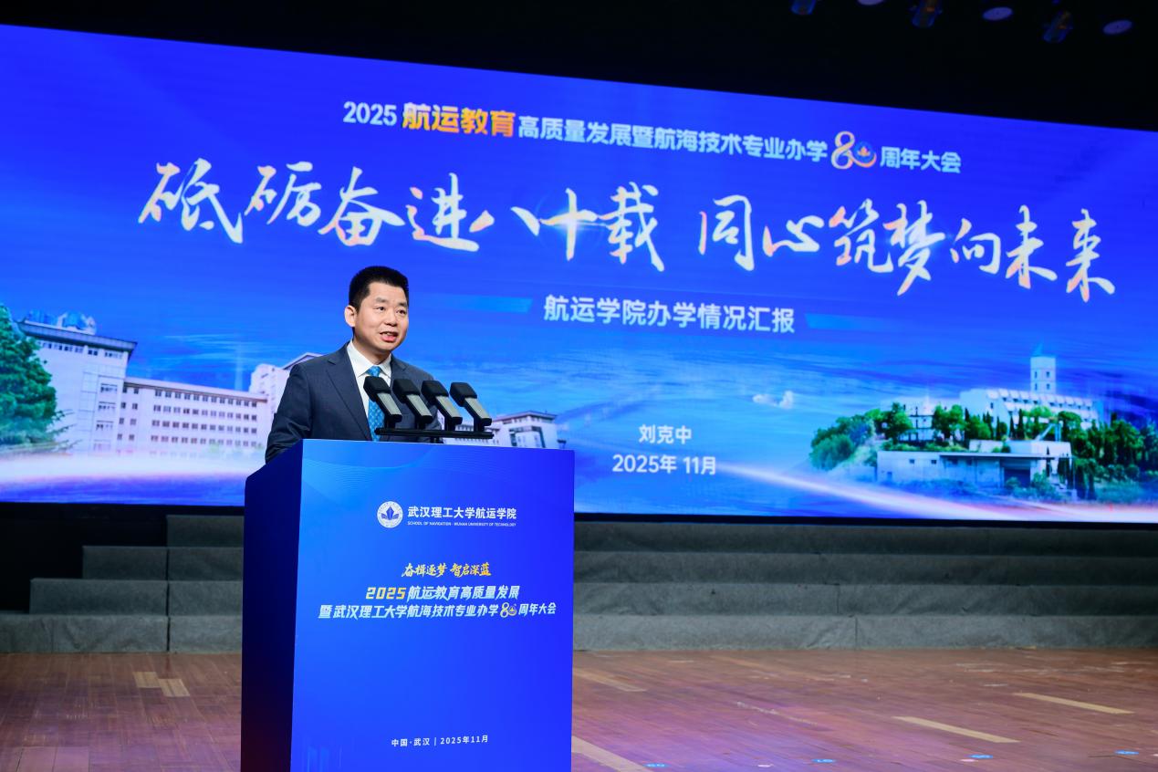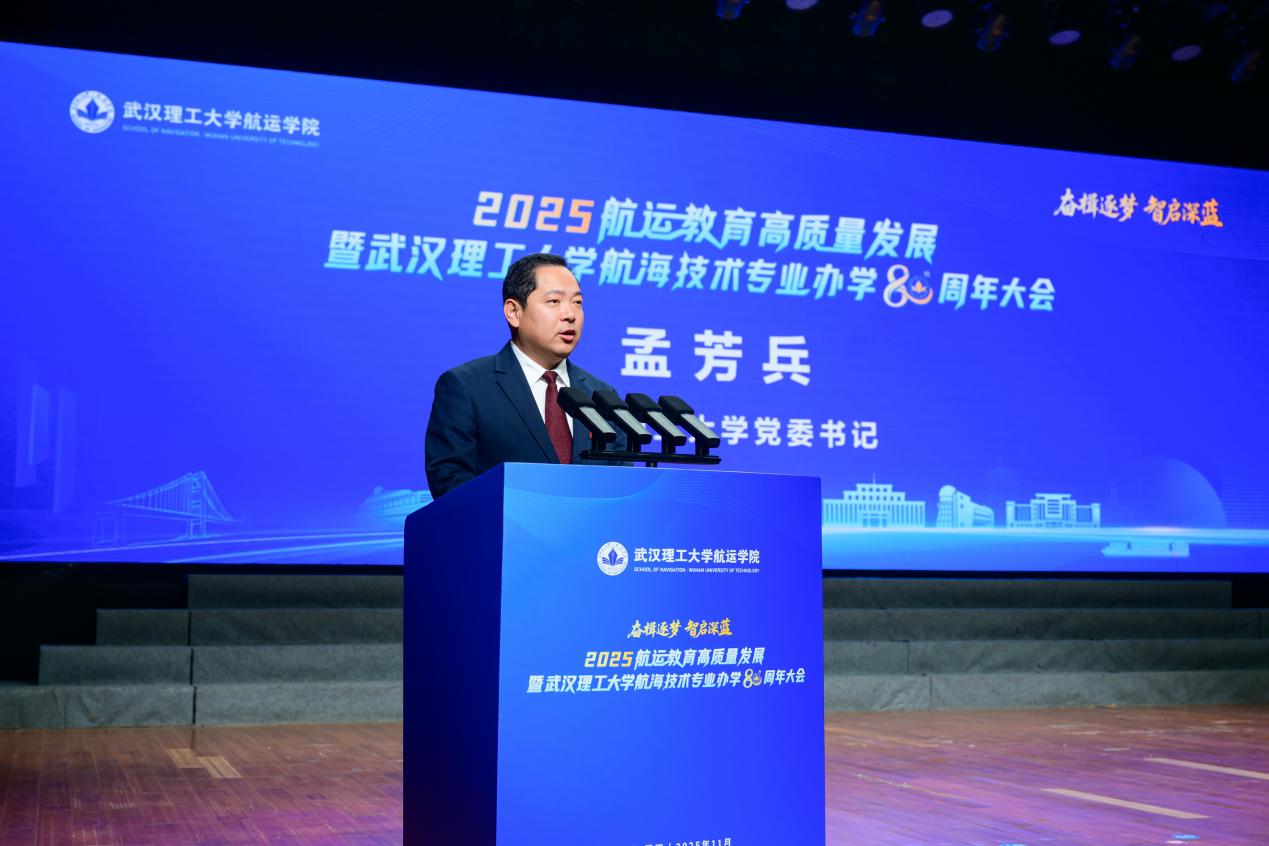 11月9日上午,航运教育高质量发展暨武汉理工大学航海技术专业办学80周年大会在湖北武汉举行,大会以“奋楫逐梦·智启深蓝”为主题。交通运输部原副部长何建中,中宣部文艺局原局长刘汉俊,原中国海运集团有限公司董事、总经理张国发,中国航海学会理事长、中国工程院院士严新平,校党委书记孟芳兵,副校长罗蓉、张笛,校务委员会副主任刘祖源等出席大会。航运行业企事业单位、部分高校代表、校友代表、学校有关单位负责人及博彩平台推荐 师生参加大会。武汉理工大学博彩平台推荐 党委书记侯俊主持大会。