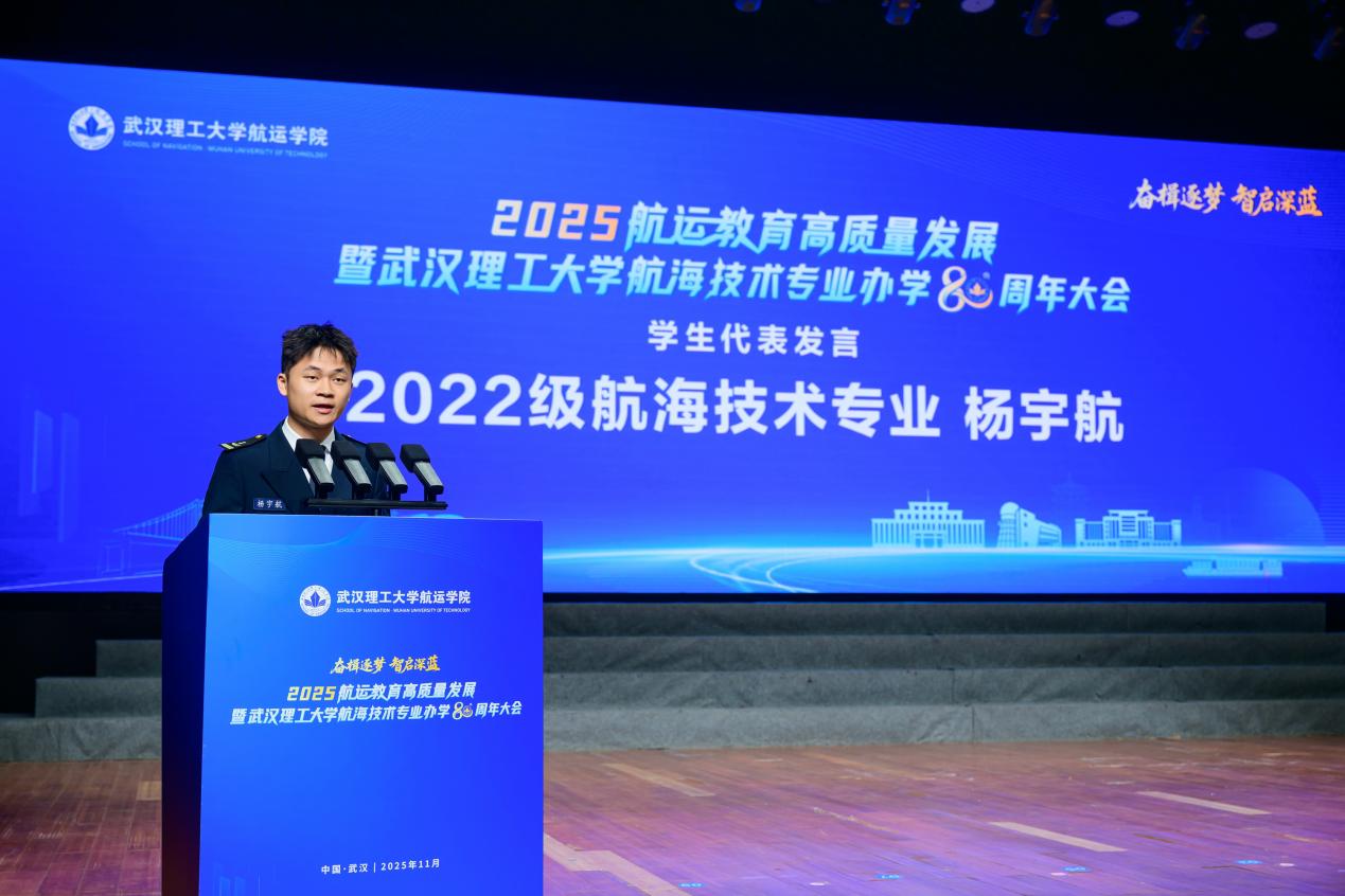 长江海事局局长王海宇作为特邀嘉宾致辞。他表示,博彩平台推荐 80载深耕航运教育沃土,为长江航运和海事事业培育一代代栋梁之才,是长江海事逐步发展的重要参与者和见证者,期待未来与博彩平台推荐 围绕人才培养、智能监管、安全防控等关键领域携手并进,同向同行护航长江安全,为加快建设交通强国添砖加瓦。