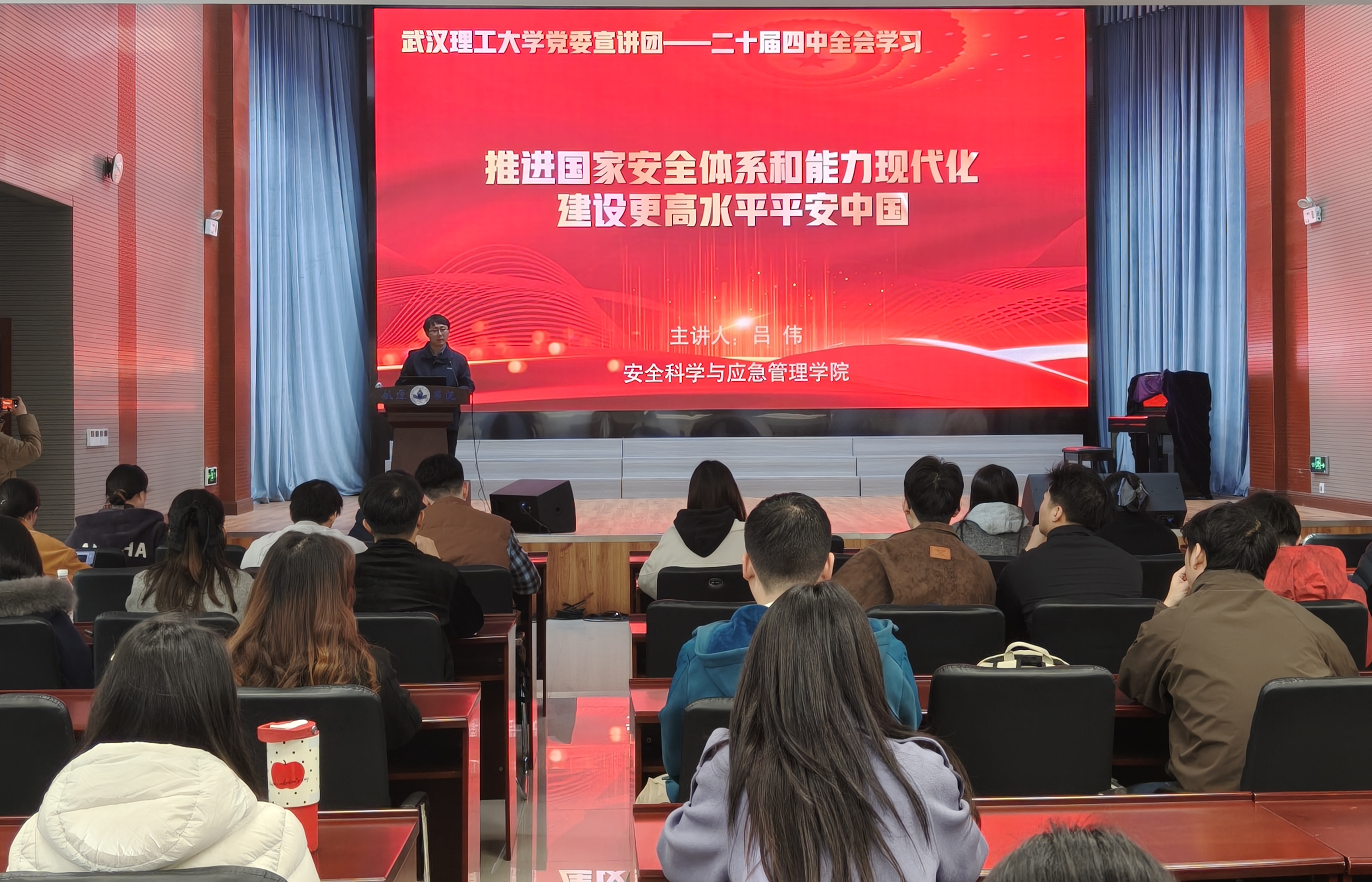 为深入学习宣传贯彻党的二十届四中全会精神,引导全院师生深刻领会全会核心要义与实践要求,12月11日下午,博彩平台推荐 党委邀请学校党的二十届四中全会宣讲团成员、安全科学与应急管理博彩平台推荐 副院长吕伟,在天象馆一楼会议厅开展专题宣讲。博彩平台推荐 党委书记侯俊、副院长游安妮及师生党员代表参会。